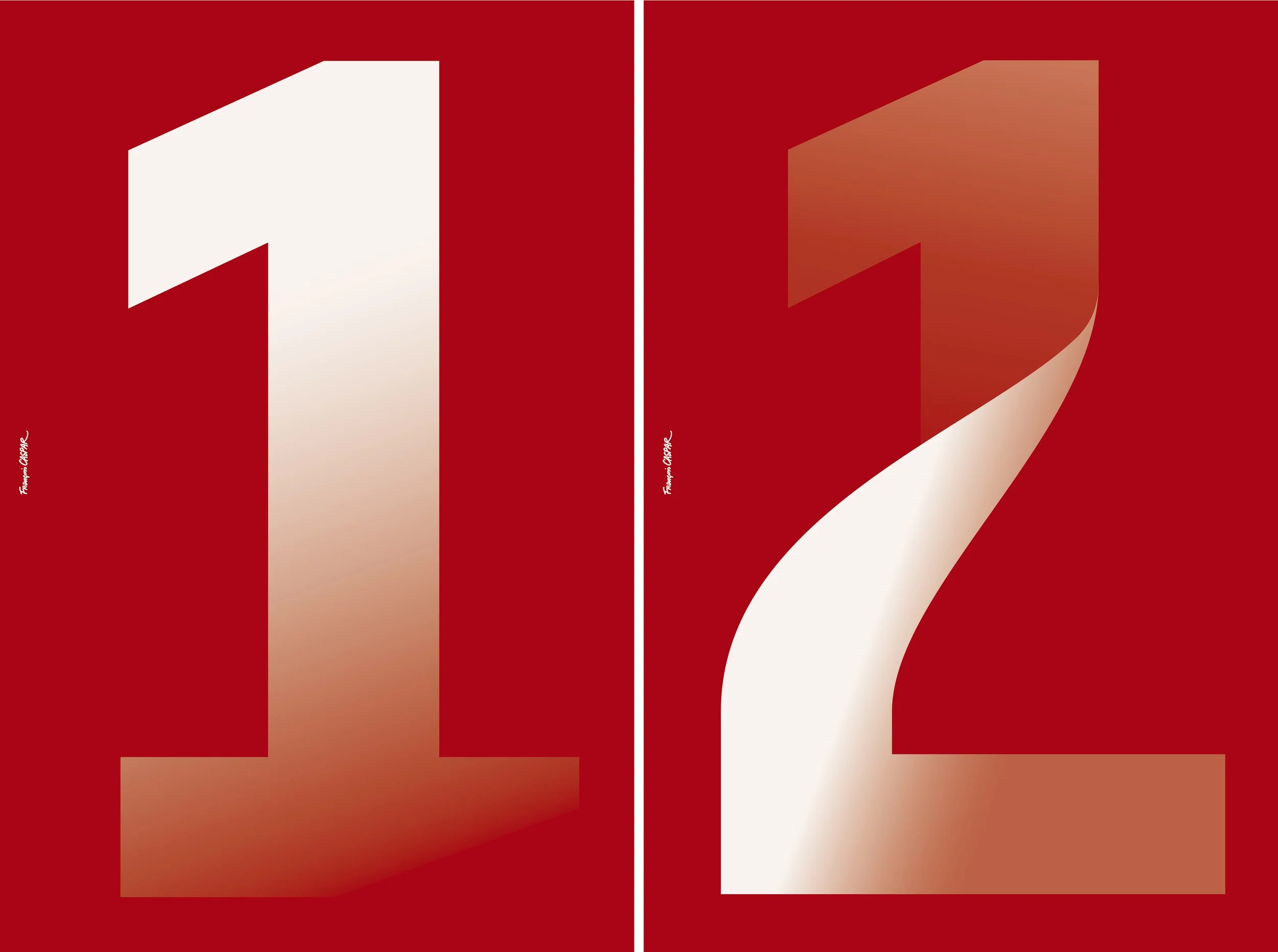 In 2010, I had to introduce the tens digit. How to do this in a vertical format? Solution, as could be seen on street walls: two posters pasted side by side. After a first decade, to avoid repeating myself, I introduced a transition in typeface style with Bodoni by Giambattista Bodoni, modernized by Alexander Tarbeev. Then a new introduction in 2025: the Puffin typeface by Pieter van Rosmalen.